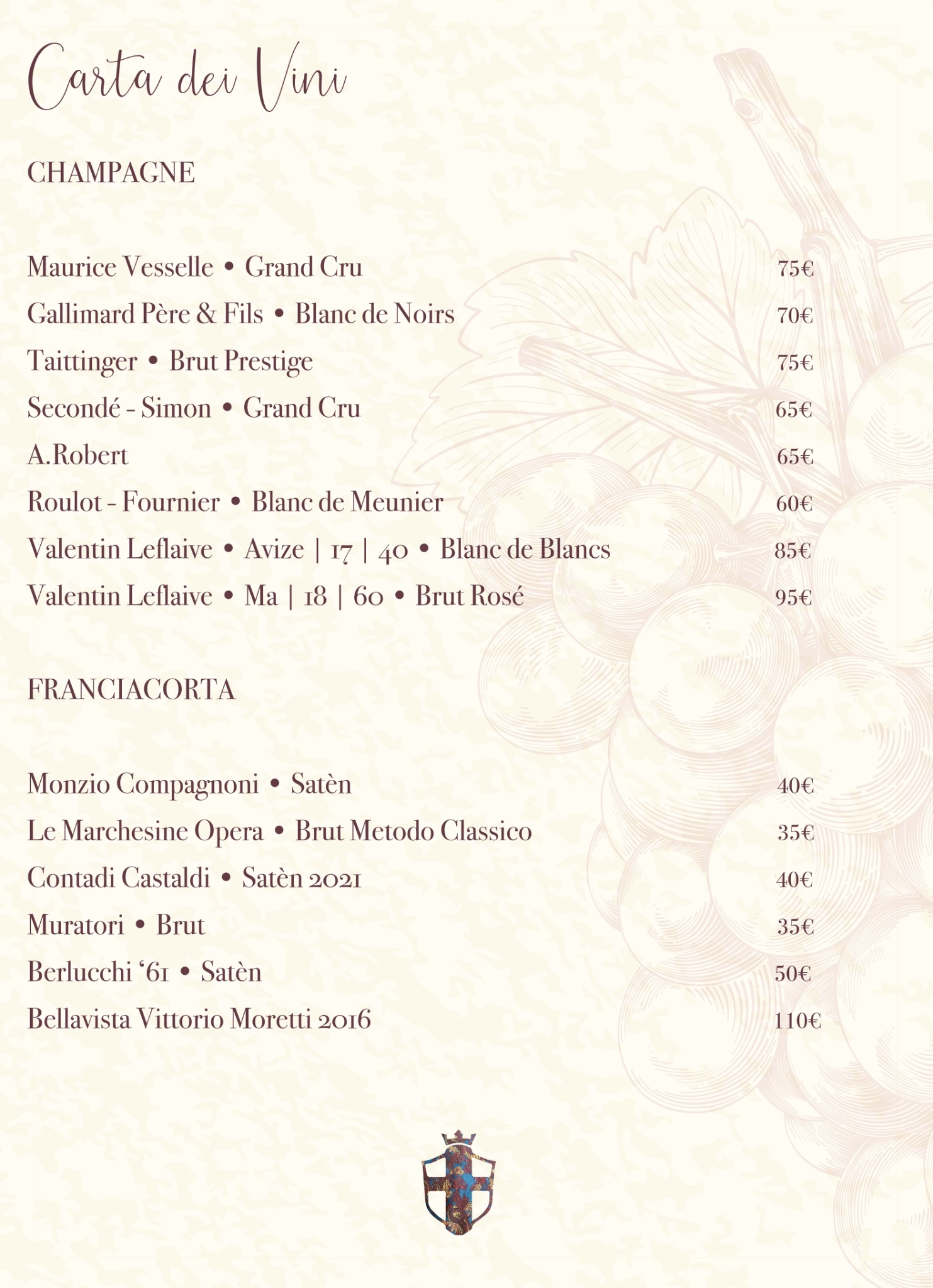 Estratto demo — utile per SEO locale e ricerche “carta vini Brescia”, “champagne”, “franciacorta”.